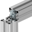 Miter joint fasteners enable profile connections from any angle. Angle brackets and plates are fastened with a countersunk screw that goes directly into the nut. No profile machining is needed for these.